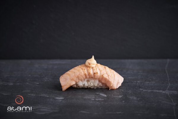 252. Laks Tataki Med Forårsløg, Teriyaki Sauce