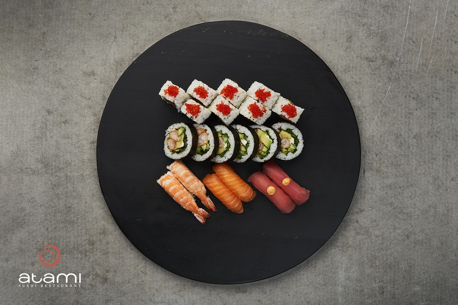 (20stk.) 1 Lækker laks (8 stk.), 1 Stor tempura roll (6 stk.) 2 Nigiri laks, 2 Nigiri spicy tun, 2 Nigiri reje.